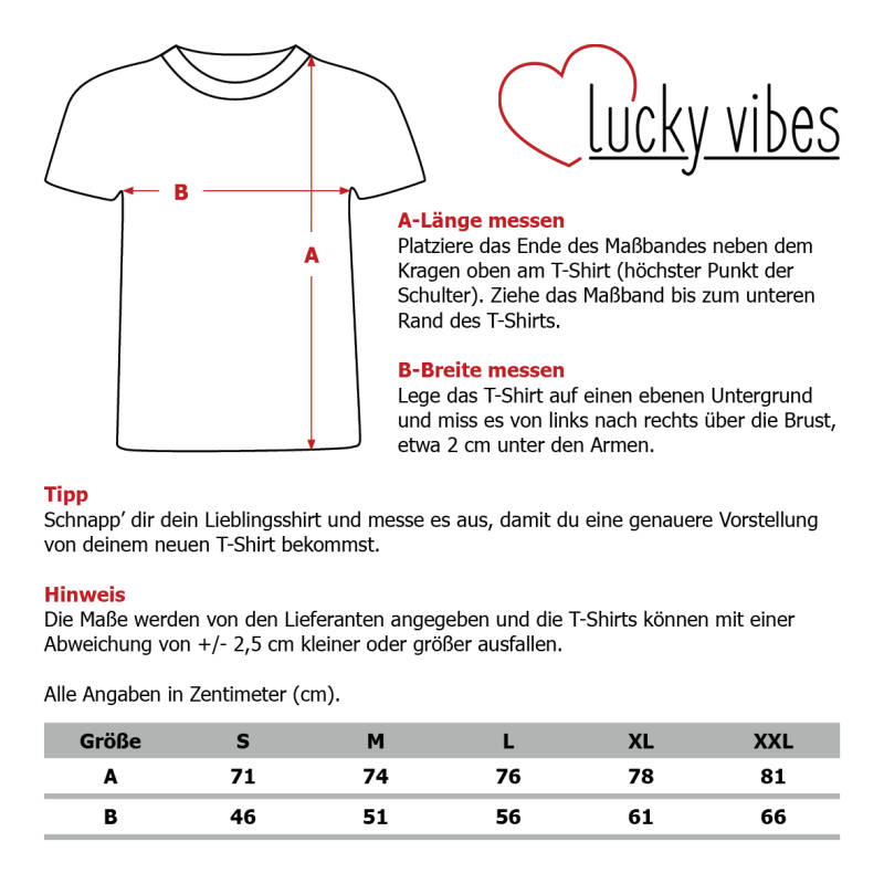 Unsere T-Shirts gibt es in den Größen S, M, L, XL, XXL.